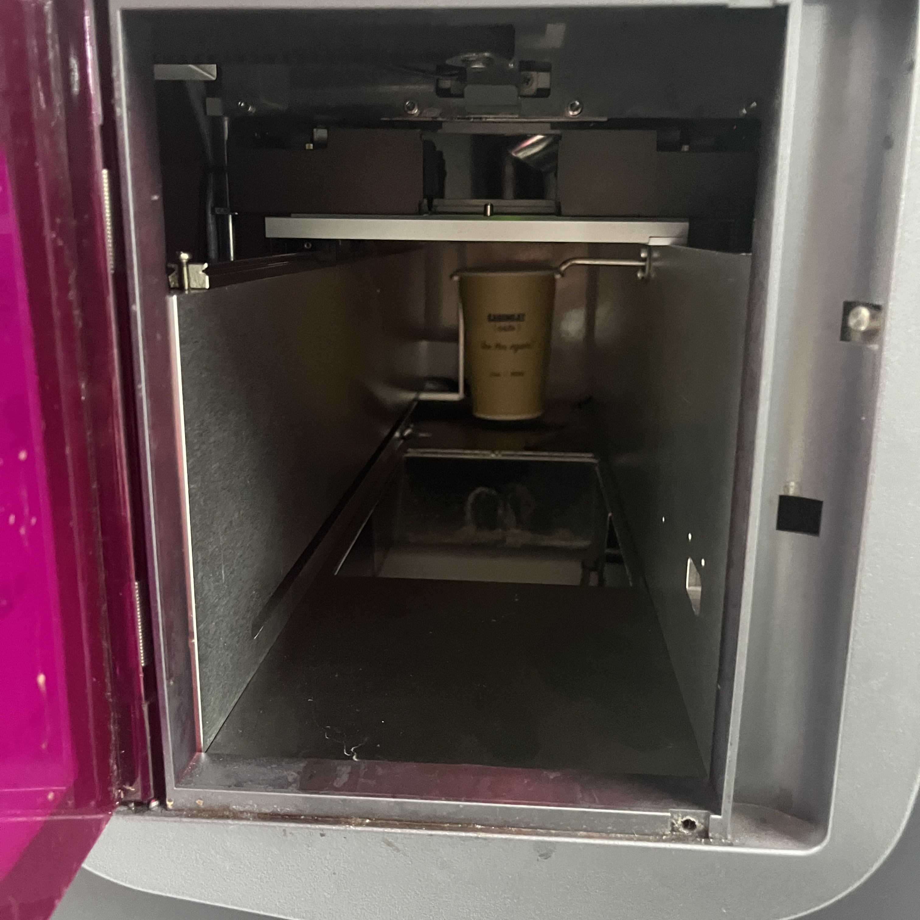 컵이 음료가 나오는 자리로 이동하지 않아 모든 음료가 버려졌다.