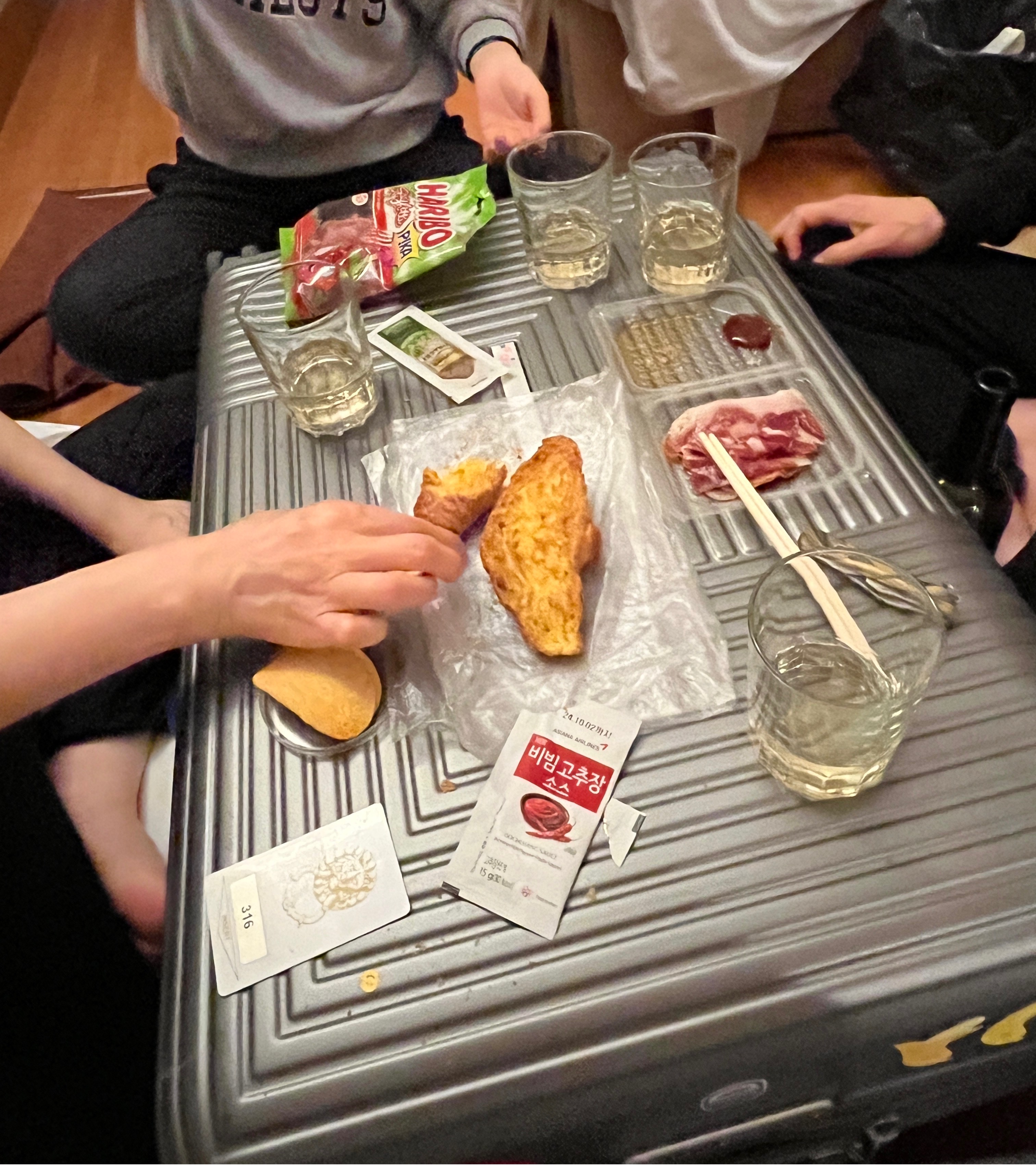호텔에 돌아와 스페인 쇼핑을 잘 마무리한 걸 자축하며 와인을 마셨다.