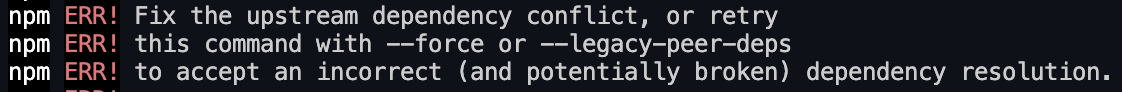 3. npm install --legacy-peer-deps를 사용해서 설치해보도록 하자