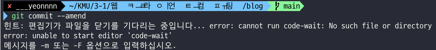 error: unable to start editor 'code-wait' 에러가 뜬다면...