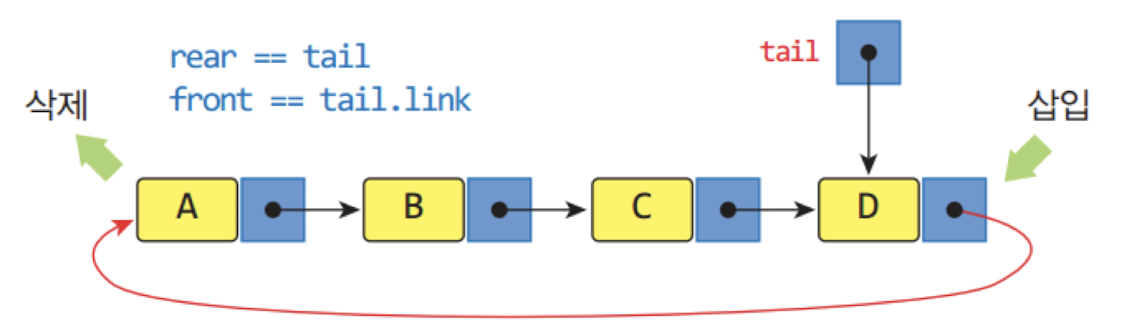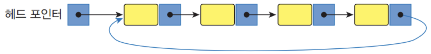 단순 연결 구조와 같은 노드 사용, 맨 마지막 노드의 링크가 첫 번째 노드를 가리킴