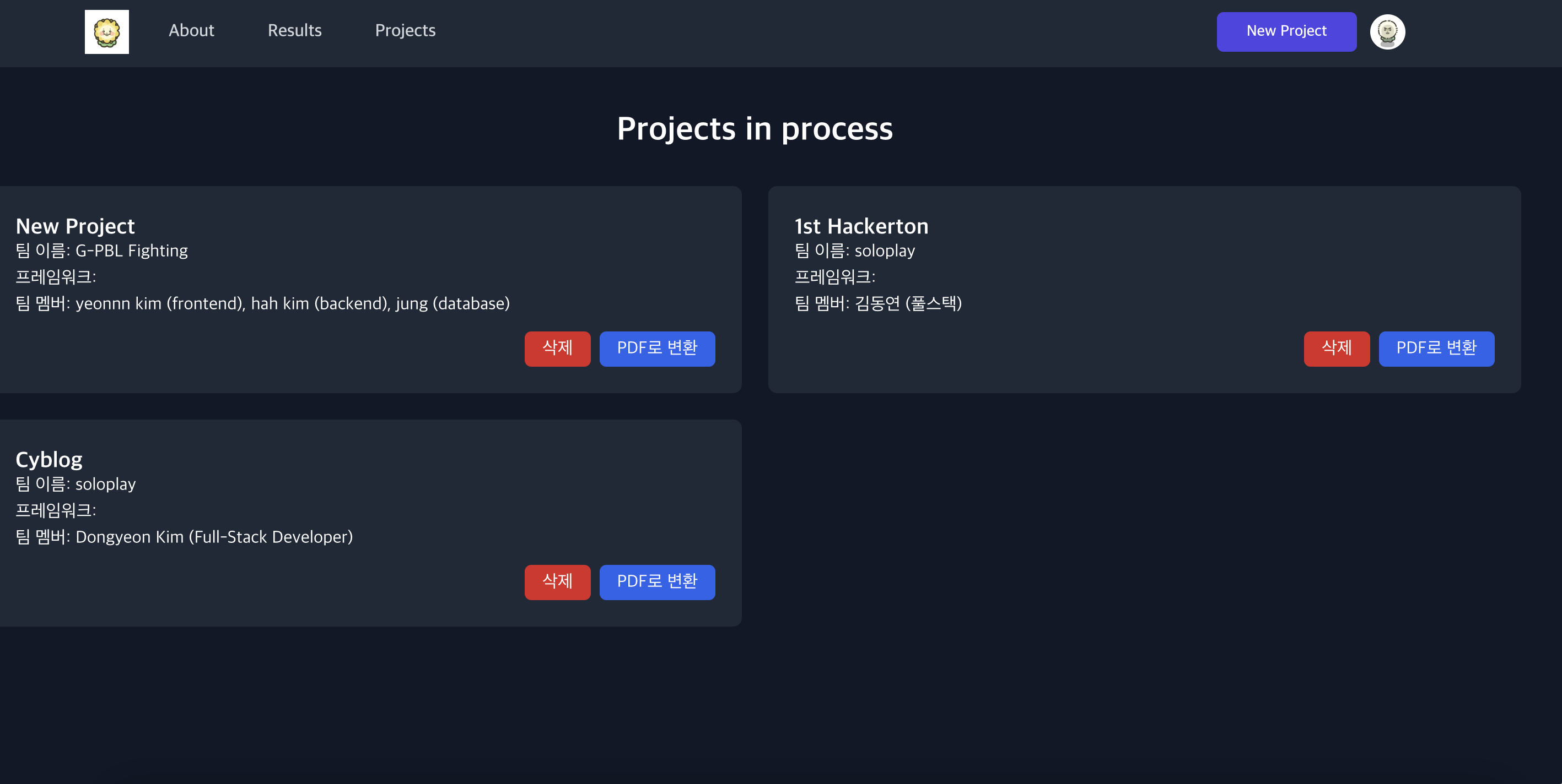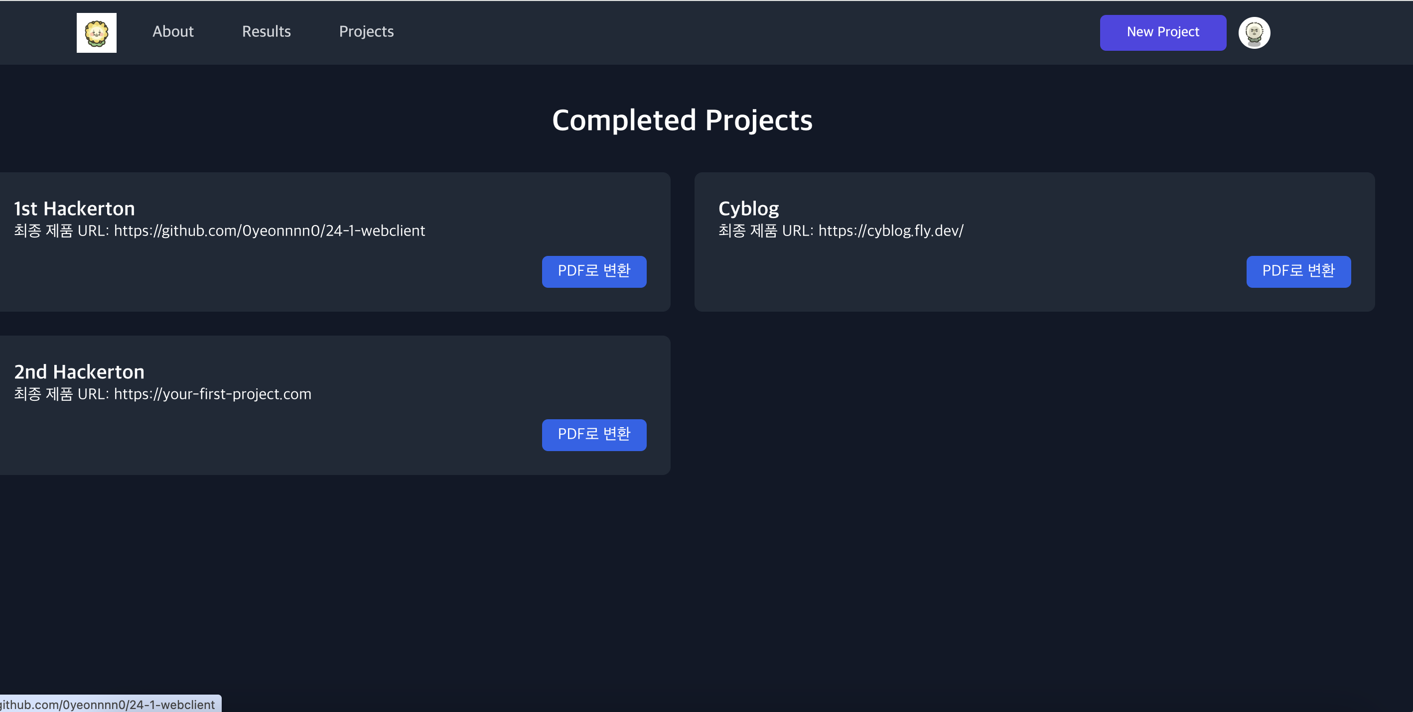 - 진행중인/완료된 프로젝트(/all-projects, /results)