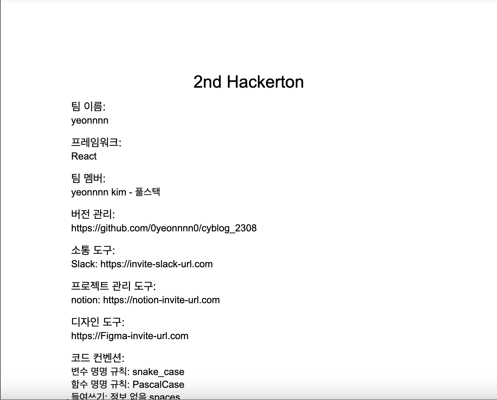 다양한 협업 도구를 쓰게 될 텐데 그 링크들 공유하기 귀찮을까 싶어(저 초보땐 카톡으로 공유했는데 매번 올라가서 찾기 귀찮더라구요) 만들어 두었습니다.