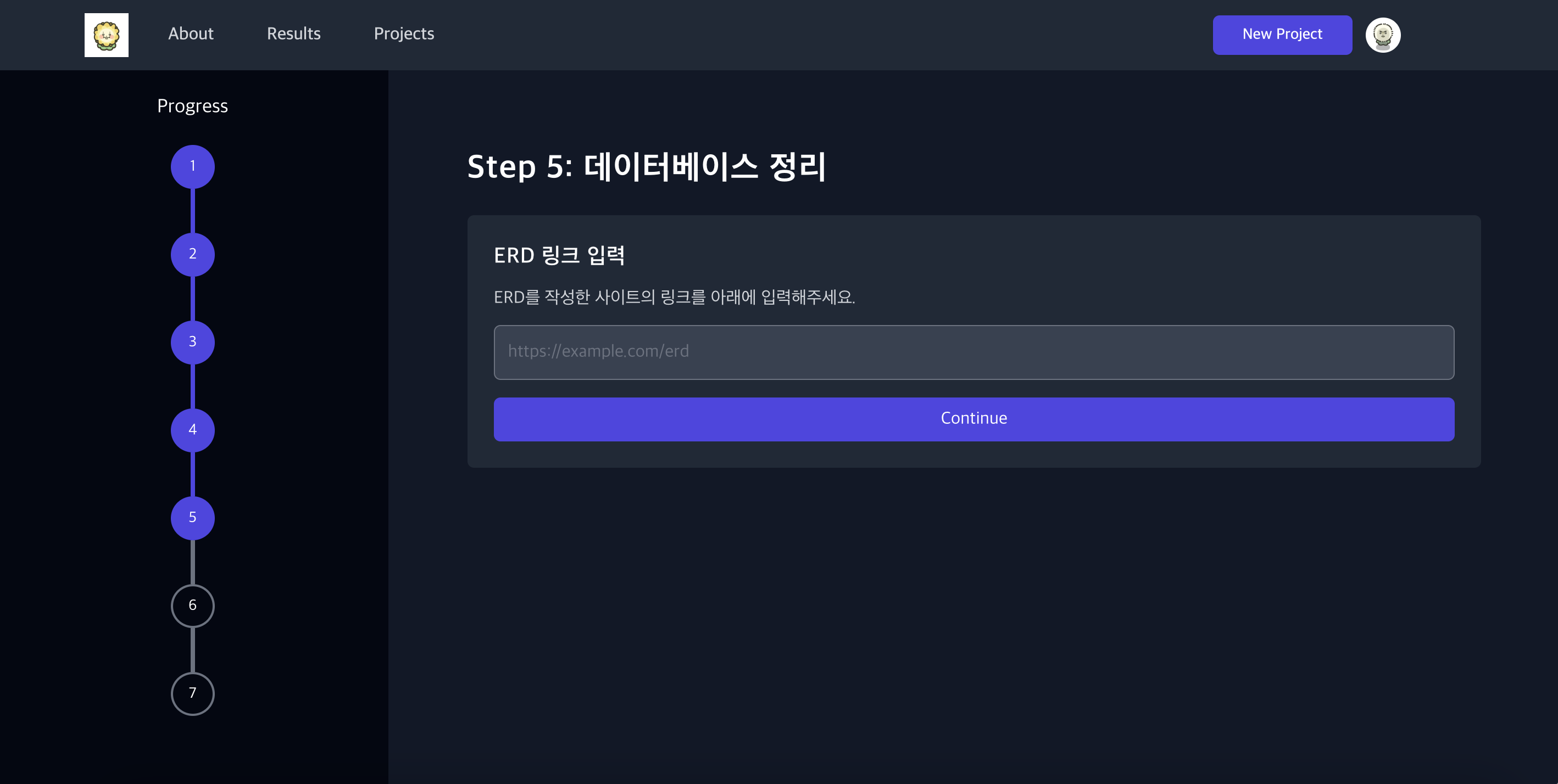 Step 5입니다. 데이터베이스 정리 및 ERD 링크 입력이에요