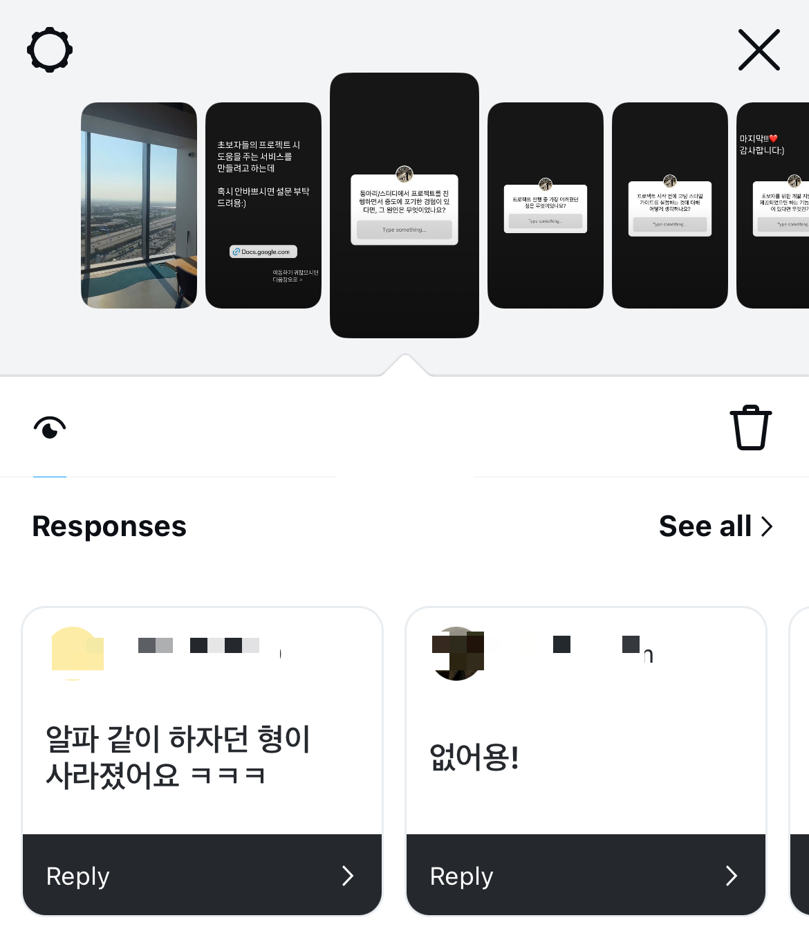 구글 폼을 통해 총 8명, 인스타그램을 통해 4명이 응답을 해준 덕분에 프로젝트에 아주 큰 도움이 되었습니다.