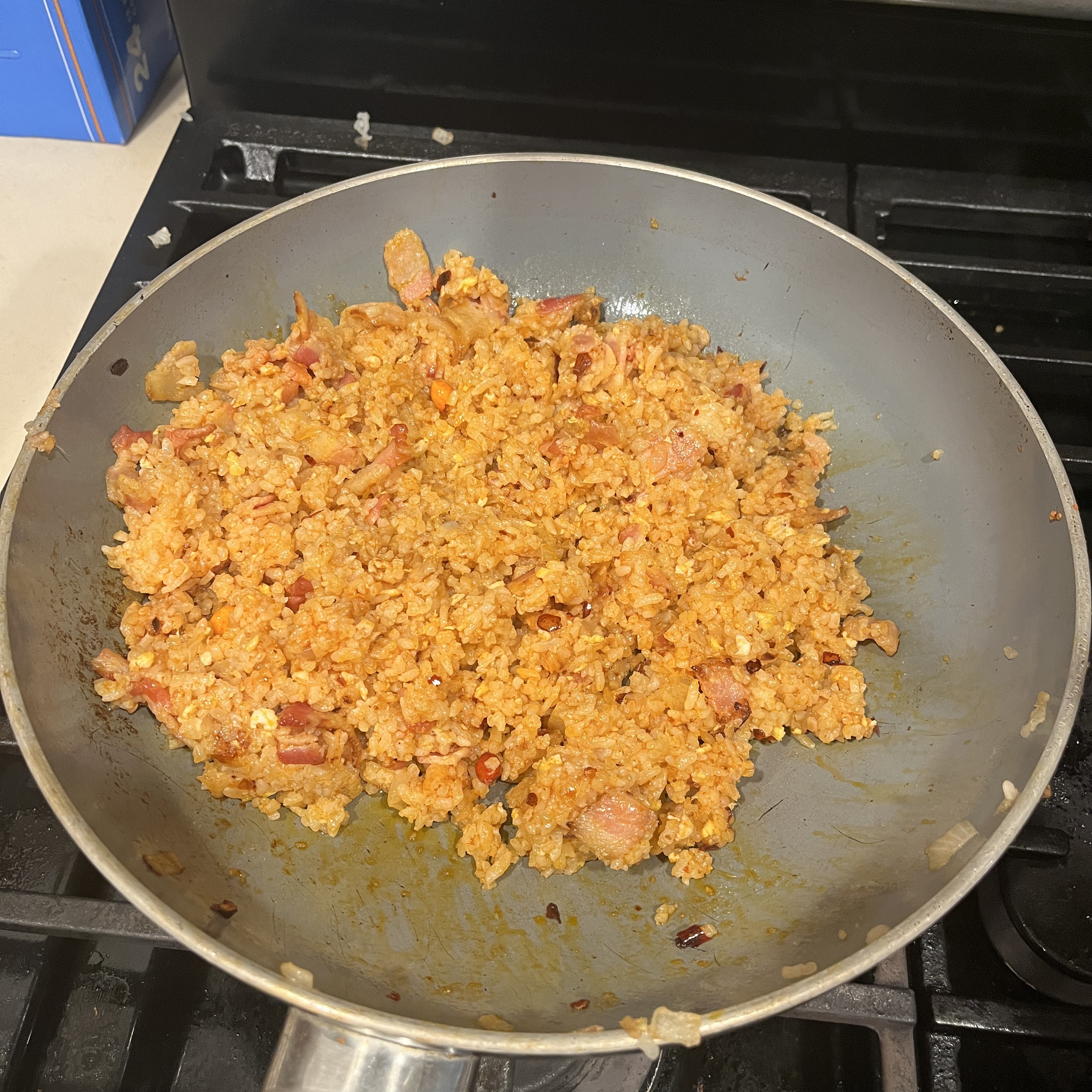 라오깐마 두 스푼을 밥과함께 볶아줍니다.