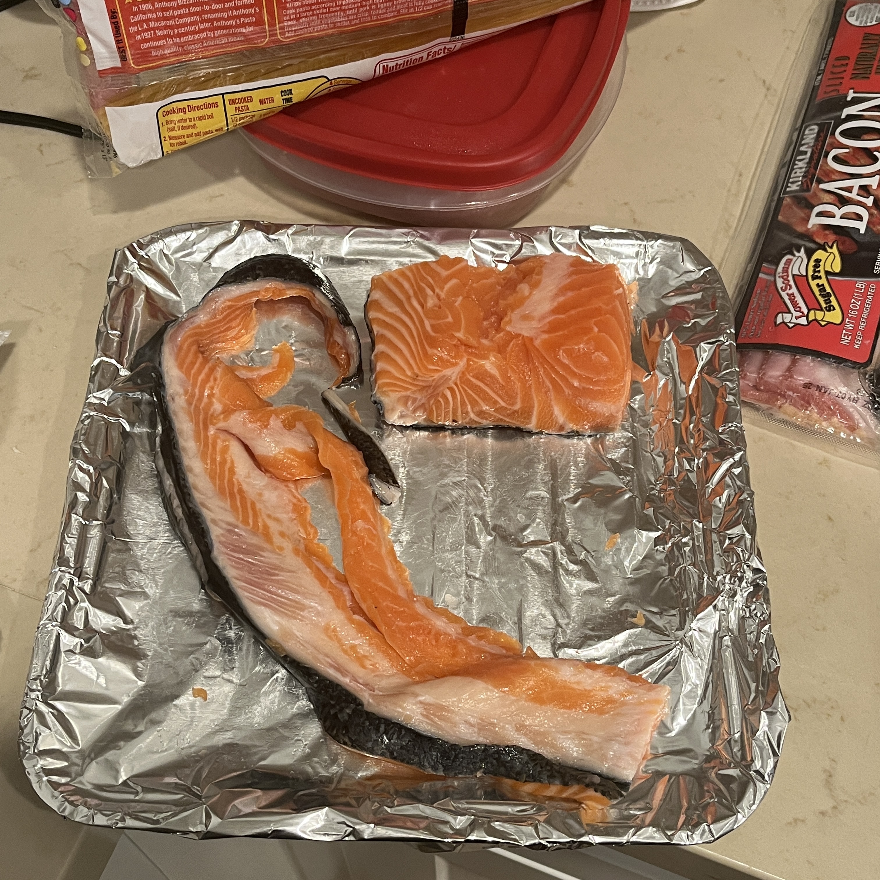 그래서 며칠 전 쇼핑을 갔을 때 반 도박성으로 연어 뼈..를 구매했다!