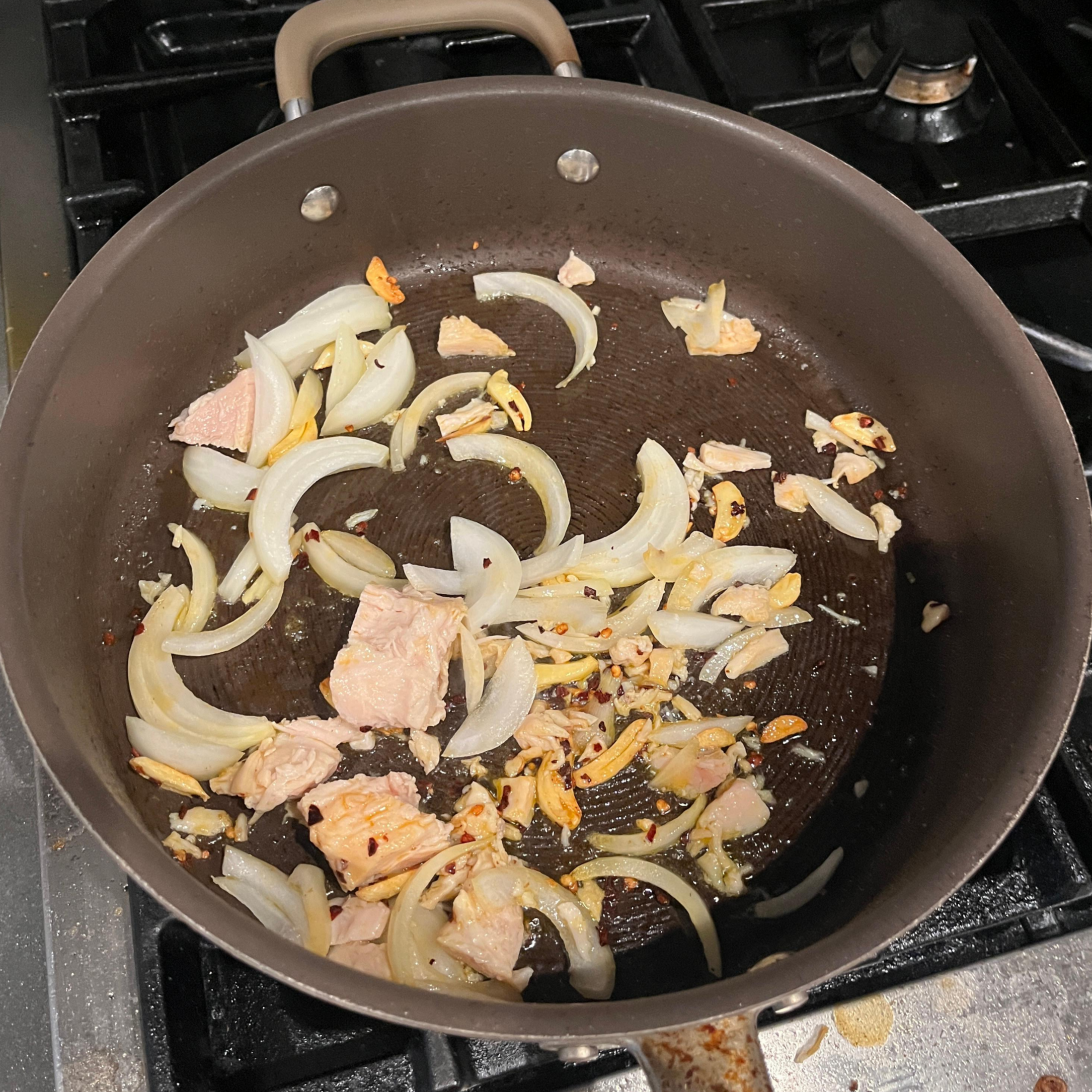 썰어둔 마늘과 Crushed Red pepper를 넣어줍니다.