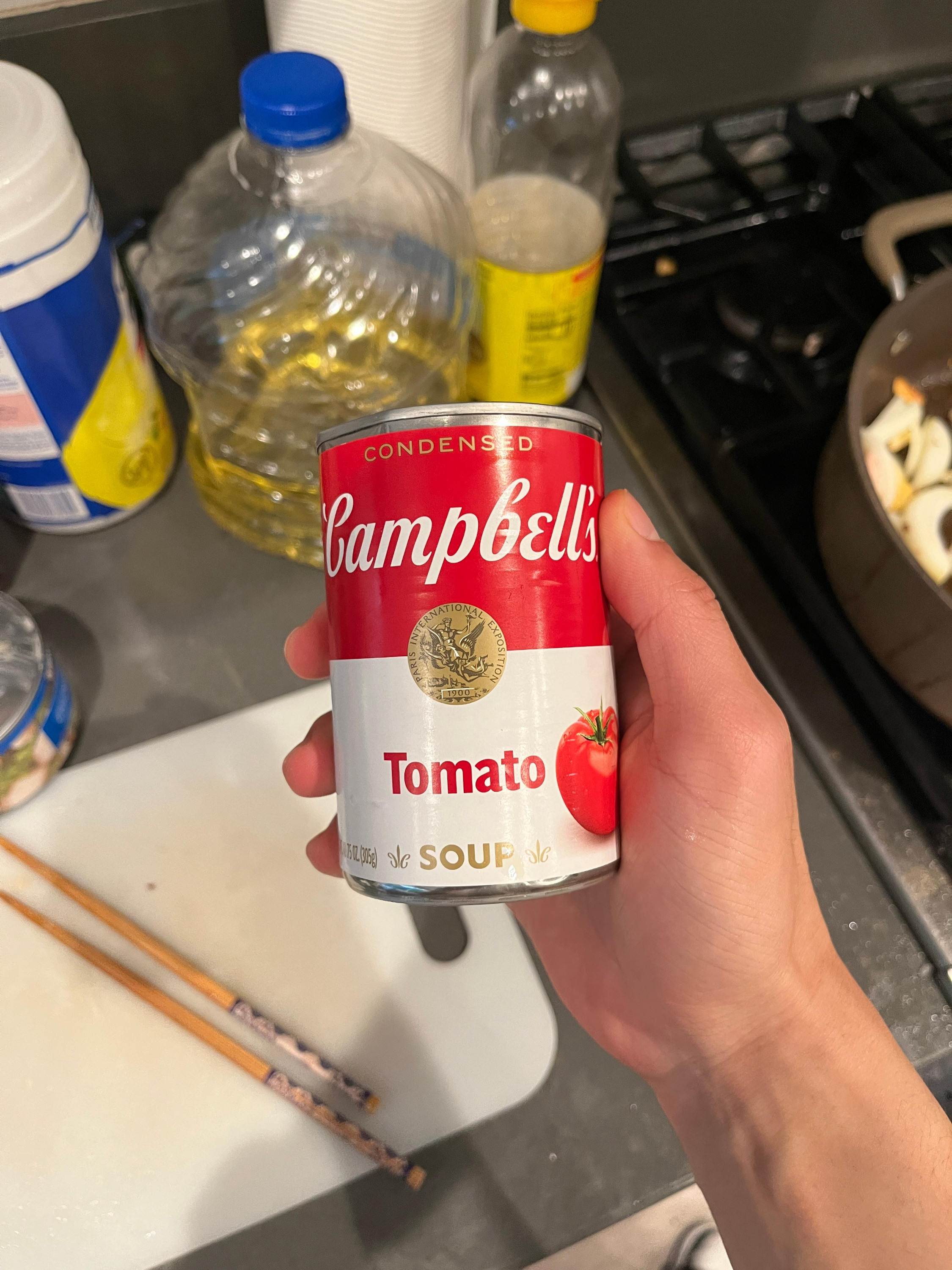 오늘의 메인 재료, 캠벨 수프를 넣어줍니다.