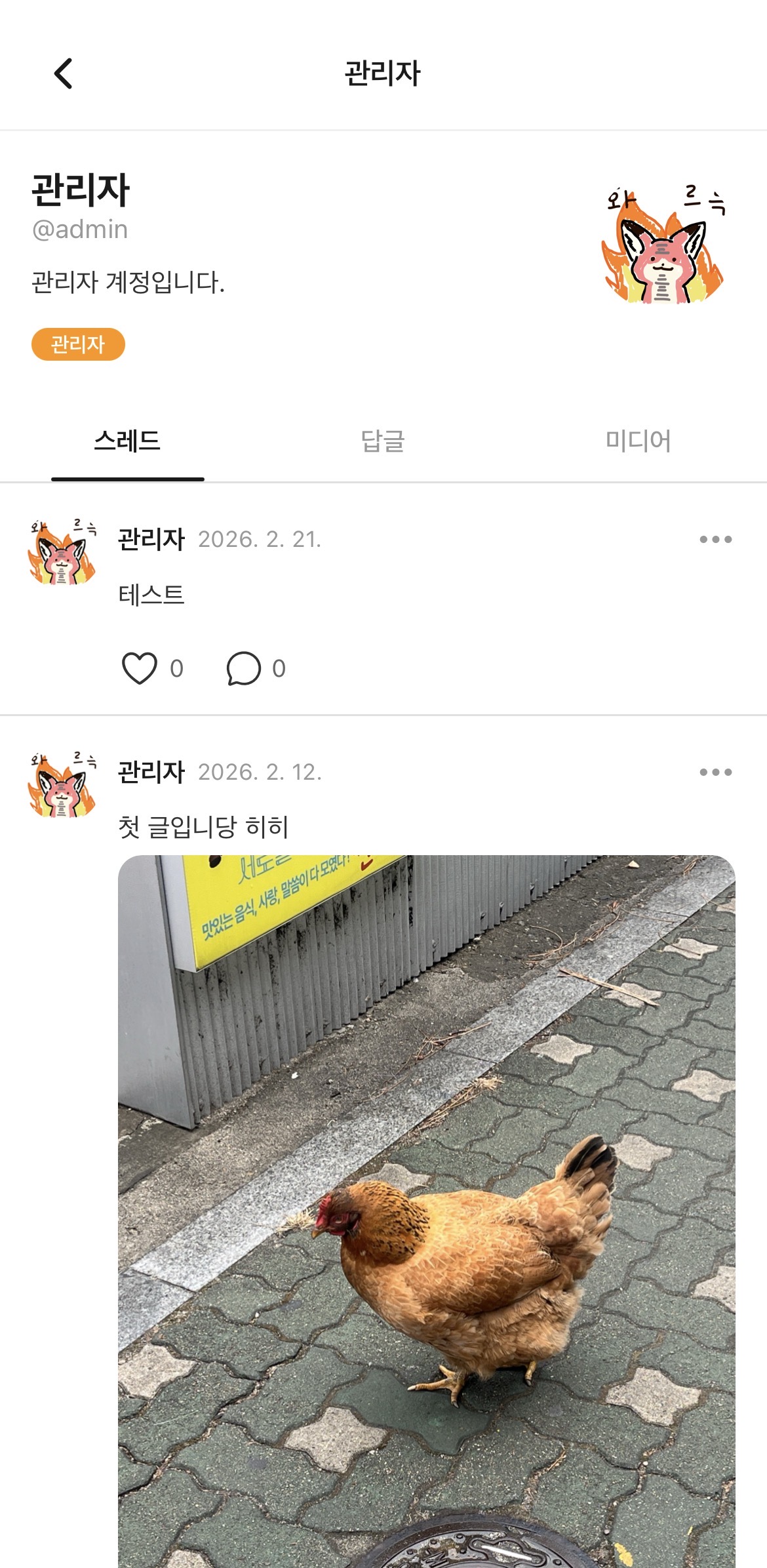 기본 레이아웃은 Threads를 벤치마킹하여 개발하였습니다.