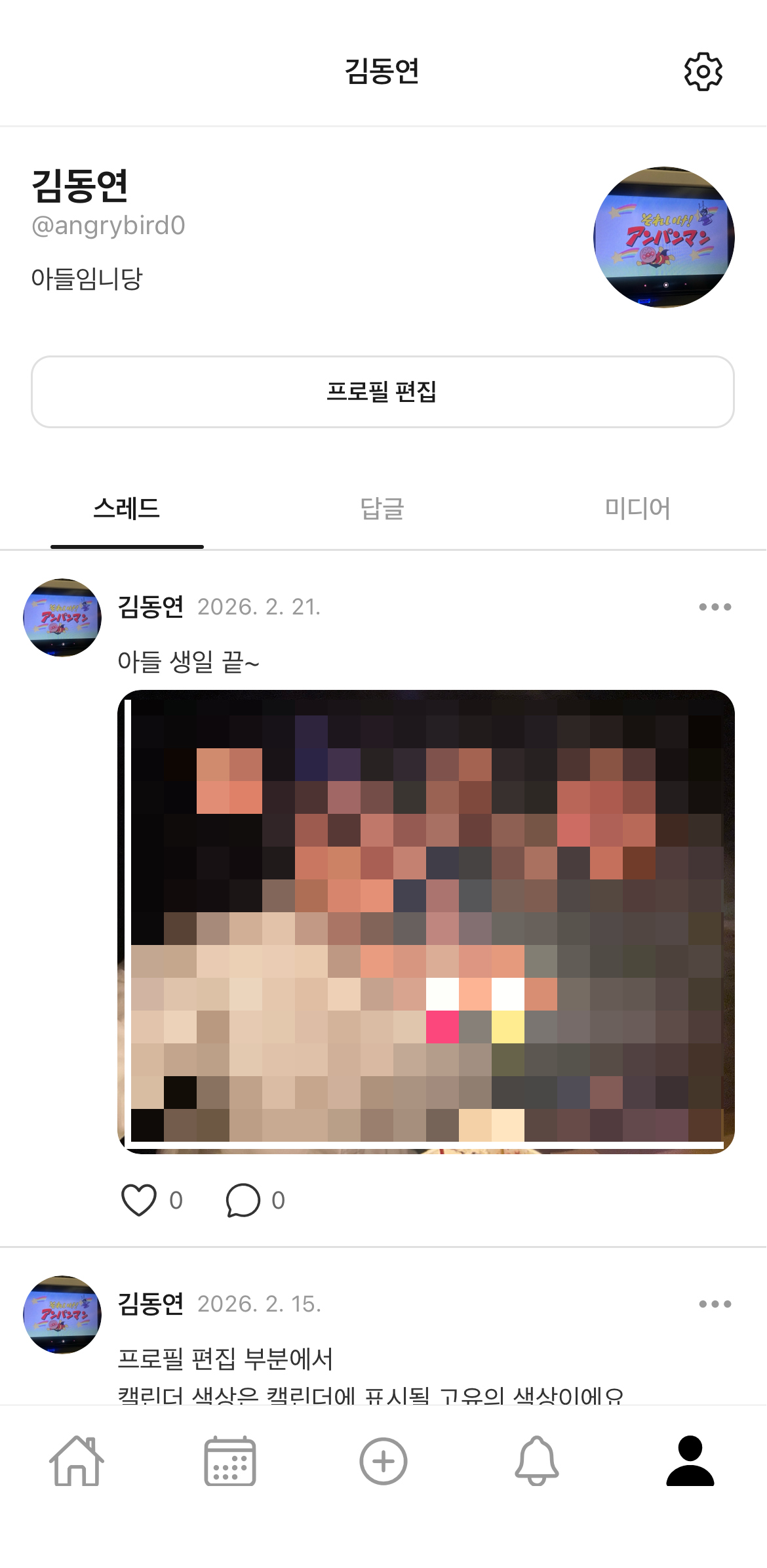 내가 올린 글, 답글을 쓴 글, 내가 올린 미디어 모아보기
