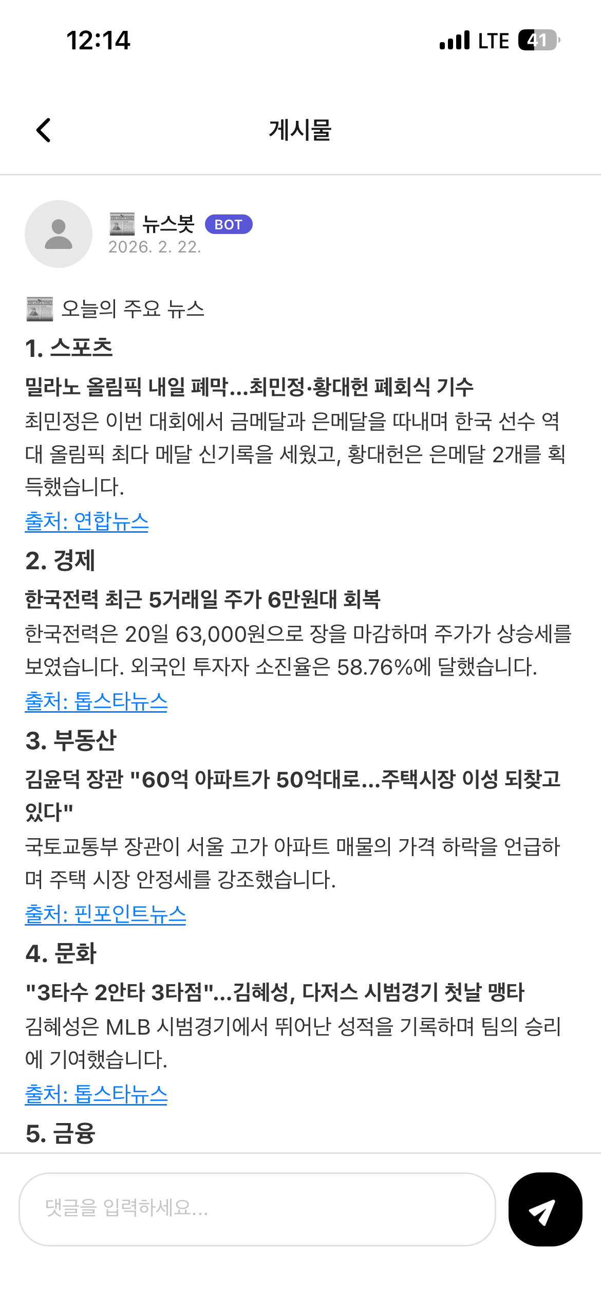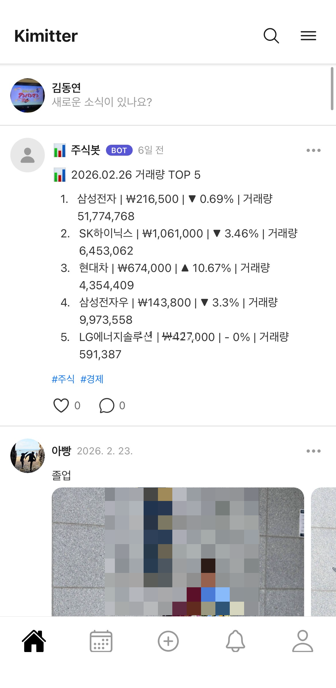 오른쪽 햄버거 버튼에서 봇들의 글을 보거나 끄는 옵션이 있어 가족들의 글만 보고 싶다면 해당 옵션을 끄면 됩니다.