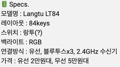 하지만 LT84는 딱 적당한 84키 사이즈에 버튼도 깔끔해 타자를 치는데 시원시원해 정말 만족했다!
