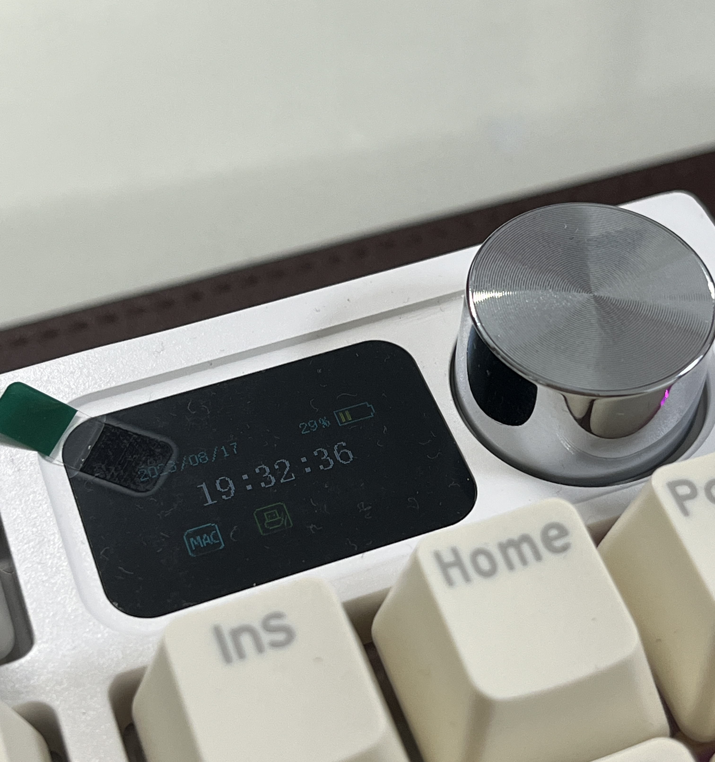 노브 다이얼을 돌려 볼륨 조절, 키보드 LED 조절, 맥/윈도우 환경 조절 등을 할 수 있어 키보드를 통해 더 편한 컴퓨터 사용을 할 수 있도록 도와준다. 작은 gif도 넣을 수 있던데, 아직 맥 환경에선 키보드 드라이버가 작동하지 않아 넣지 못하고 있다.